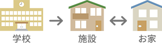 未就学の児童と小学1年生から高校3年生までの学校通学中の障がいのある子どもたちが、放課後や長期休暇中に社会性や生活能力向上のための訓練や活動を行いながら、心と身体を育むことを支援し、安心して過ごせる時間を提供する施設です。